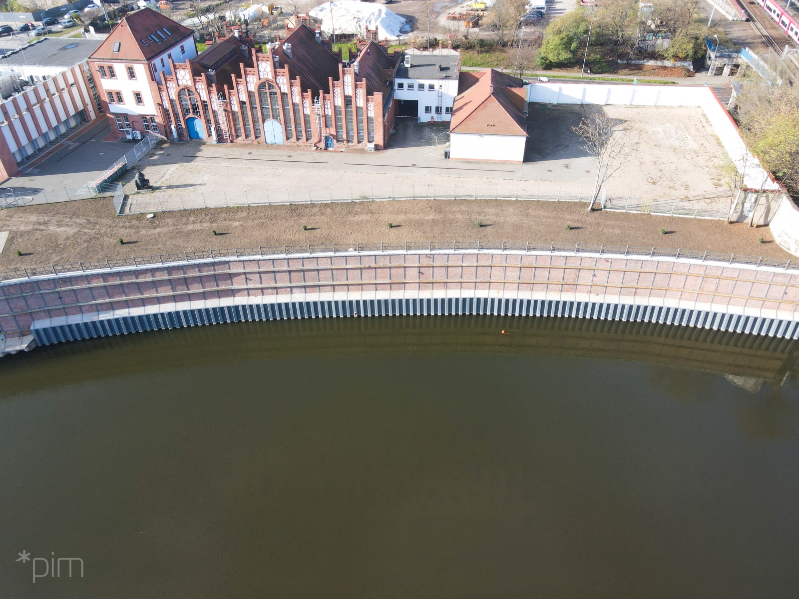 W ramach zadnia przebudowany został ok. stumetrowy odcinek miejski muru, tzn. od mostu kolejowego w stronę centrum. Podobne prace toczą się na sąsiedniej działce, bliżej ul. Estkowskiego, za które odpowiada inwestor prywatny.