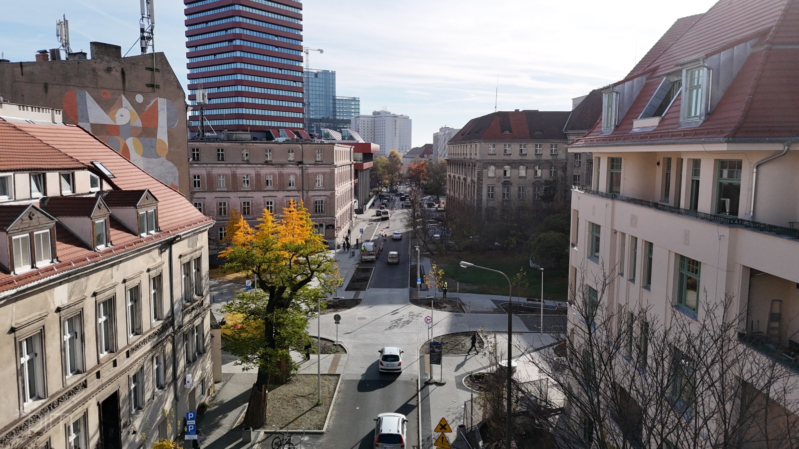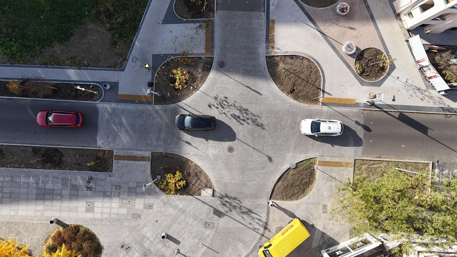 W północnej części skrzyżowania odbrukowano też przestrzeń przy dwóch rosnących tam wcześniej drzewach, co poprawi warunki ich wzrostu.