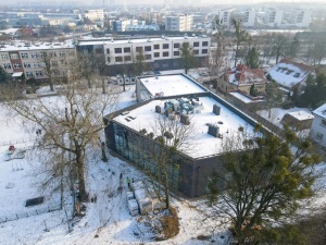 W dodatkowym, wolnostojącym budynku swoją siedzibę znajdzie nie tylko aula szkolna, lecz również filia Biblioteki Raczyńskich.