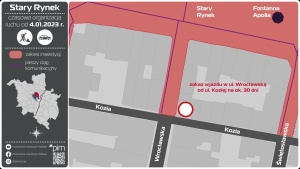 Rozpoczynające się roboty wymuszą zamknięcie dla ruchu pojazdów tego odcinka ul. Wrocławskiej, z którego dotąd mogły korzystać służby ratunkowe, a także mieszkańcy i dostawcy. W czasie prowadzenia prac na ul. Wrocławskiej służby ratunkowe będą mogły dojeżdżać do płyty Starego Rynku wyłącznie ul. Paderewskiego. Piesi poruszający się ul. Wrocławską w dalszym ciągu będą mogli dojść do Starego Rynku chodnikiem.