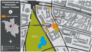 Realizacja robót, w wyniku których skrzyżowanie ulic Taylora i Kościuszki zostanie wyniesione, by uspokoić ruch i zwiększyć bezpieczeństwo pieszych, będzie się odbywać w dwóch etapach. Skrócą one czas przebudowy i zminimalizują utrudnienia, zapewniając jednocześnie ciągłość ruchu pieszego, rowerowego i kołowego.