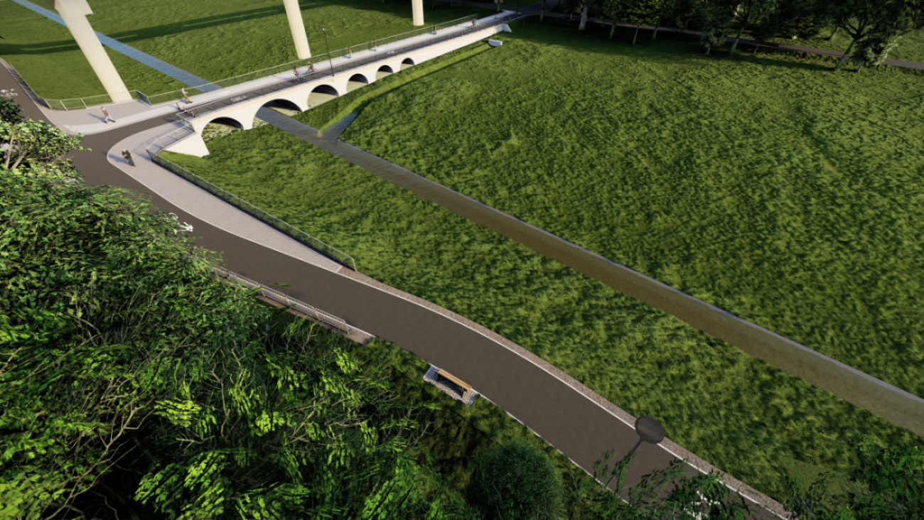 Budowa nowego odcinka rozpocznie się w rejonie północnej alei w parku Wodziczki, gdzie kończy się wybudowana w ubiegłym roku droga rowerowa z chodnikiem. Dalej trasa zostanie poprowadzona nad Bogdanką, w rejonie wiaduktu PST. Następnie połączy się z południową aleją dla pieszych. Nasyp po tej stronie będzie musiał zostać podwyższony, dlatego w zakres zadania wchodzi też częściowa przebudowa alei.