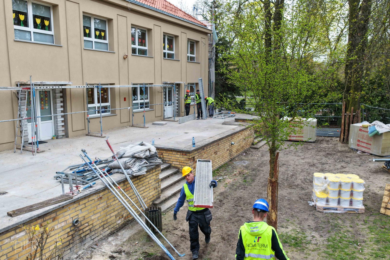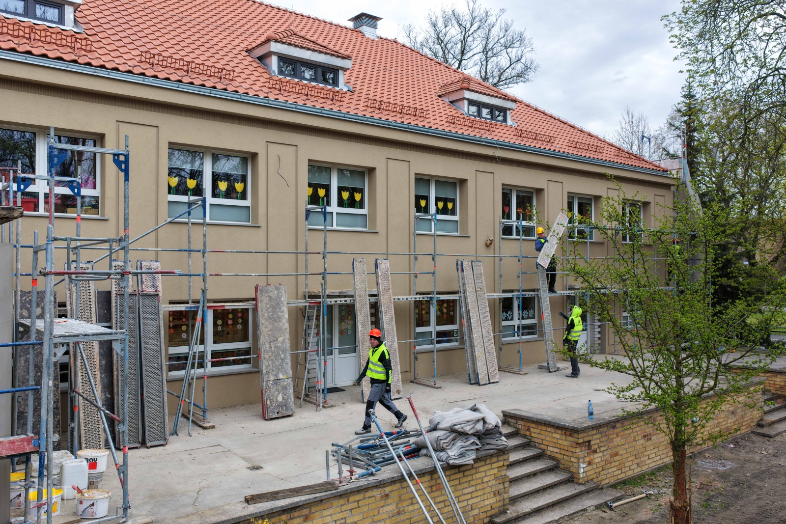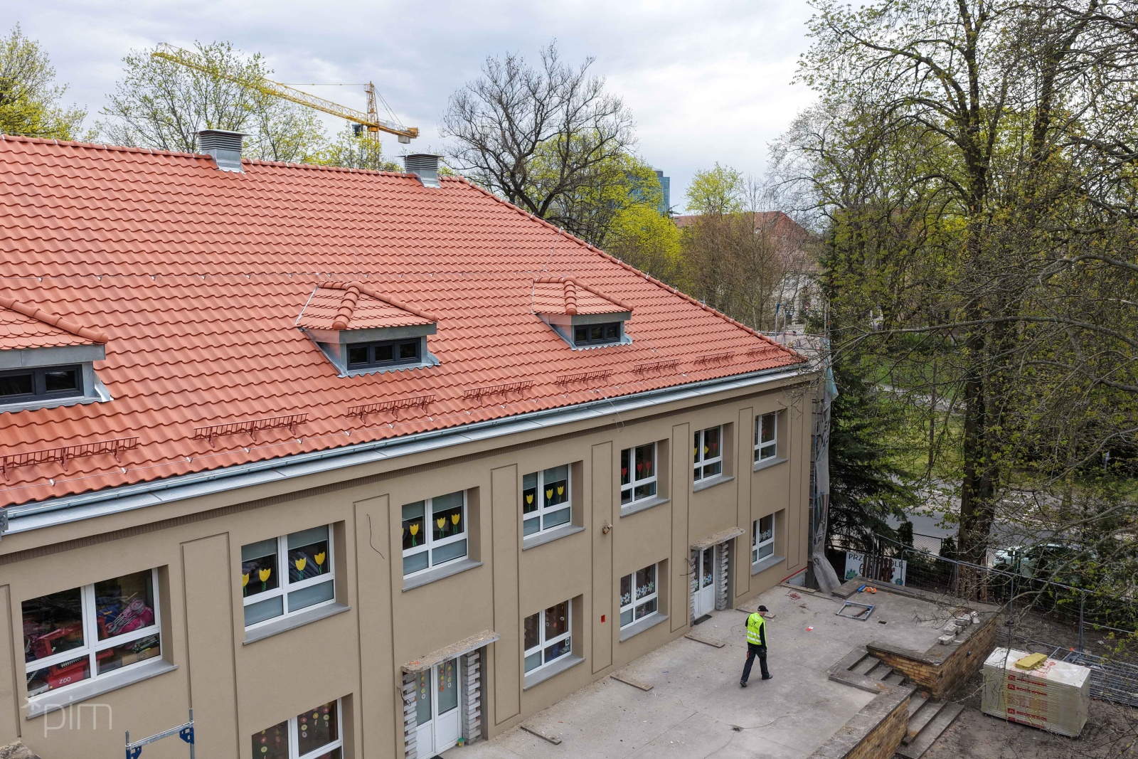 Budynek przedszkola nr 66 „Zaczarowany Ogród” jest w trakcie dużych zmian. Postępują prace w ramach zadania polegającego na modernizacji poszycia dachowego oraz termomodernizacji elewacji. Dzięki inwestycji poprawi się stan techniczny budynku i wzrosną jego walory estetyczne.
