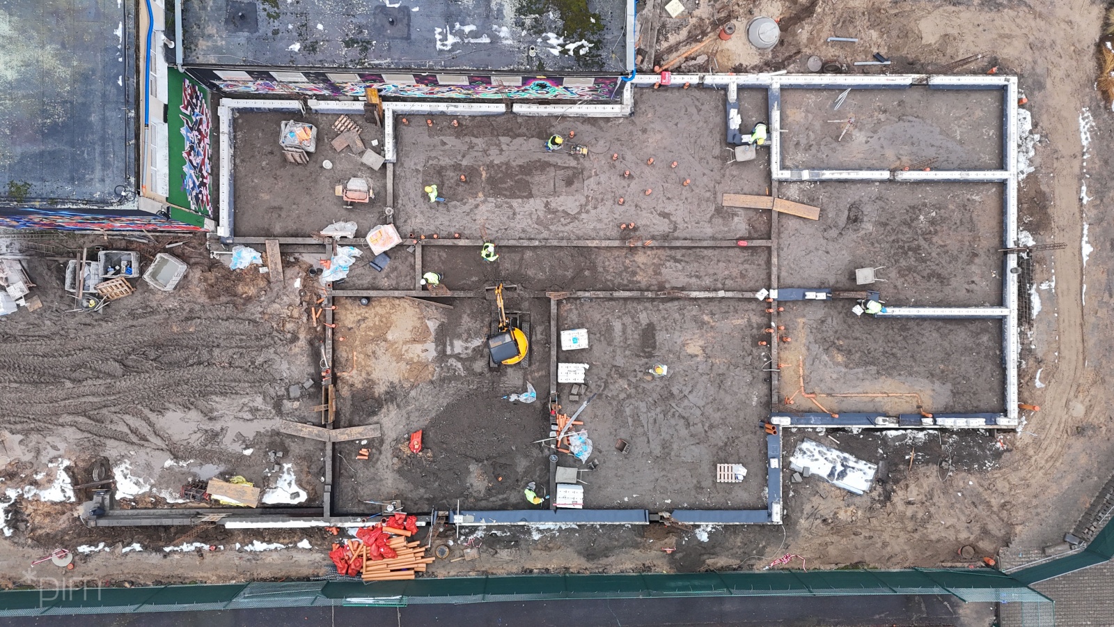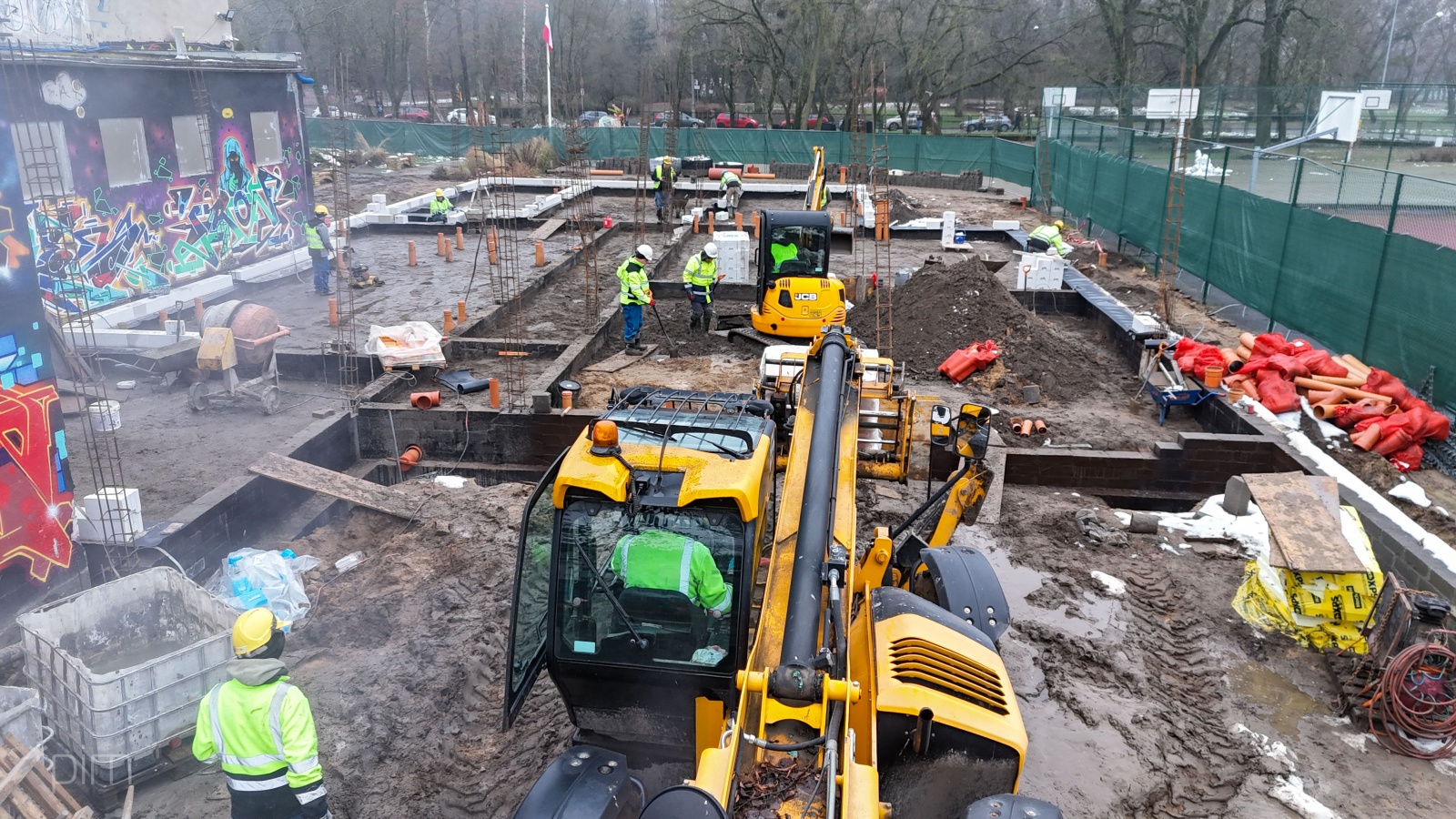 - Teraz na placu budowy postępują prace związane z fundamentami oraz trzpieniami, czyli zbrojonymi elementami konstrukcyjnymi. Na swoim miejscu jest już także pierwszy, podziemny zbiornik retencyjny i wykonawca przygotowuje się do montażu drugiego. Równolegle kontynuowane są prace z zakresu sieci infrastruktury podziemnej, które są doprowadzane do powstającej nowej części budynku – mówi Tomasz Płóciniczak, wiceprezes spółki Poznańskie Inwestycje Miejskie.