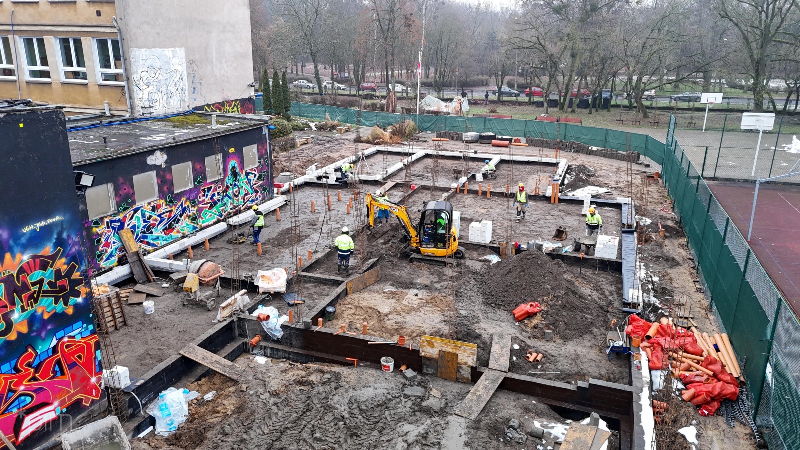 Trwa budowa miejsca z salami warsztatowymi do praktycznej nauki zawodu w zakresie trzech branż: architektury krajobrazu, wykończenia wnętrz oraz budowlanej. Będzie to nowa część Zespołu Szkół Budowlano-Drzewnych przy ul. Raszyńskiej. Działania w terenie rozpoczęły się w drugiej połowie października od robót ziemnych.