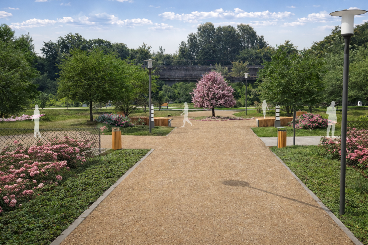 Nowa, zielona przestrzeń połączy istniejący skwer Sprawiedliwych Wśród Narodów Świata z parkiem Jana Pawła II. Tym samym możliwe będzie przejście terenami zieleni od południowej strony miasta w głąb centrum. Dodatkowo miejsce to będzie przedłużeniem istniejącego, południowego klina zieleni - założenia urbanistycznego stworzonego przez Władysława Czarneckiego.