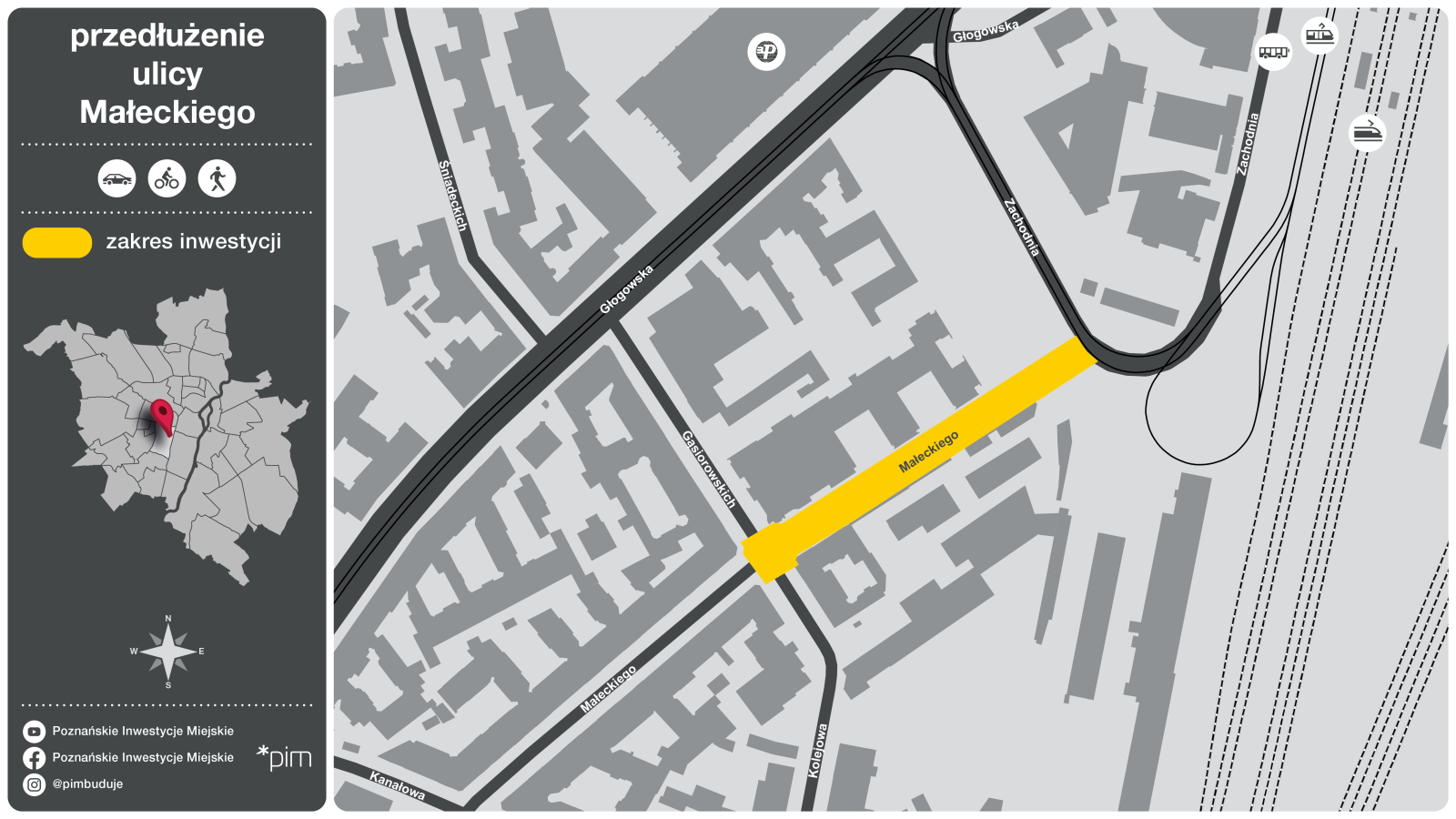 W ramach zadania zostanie opracowana dokumentacja projektowa dla przedłużenia ul. Małeckiego od ul. Gąsiorowskich do planowanej ul. Dolnej Głogowskiej wraz z uzyskaniem niezbędnych decyzji.