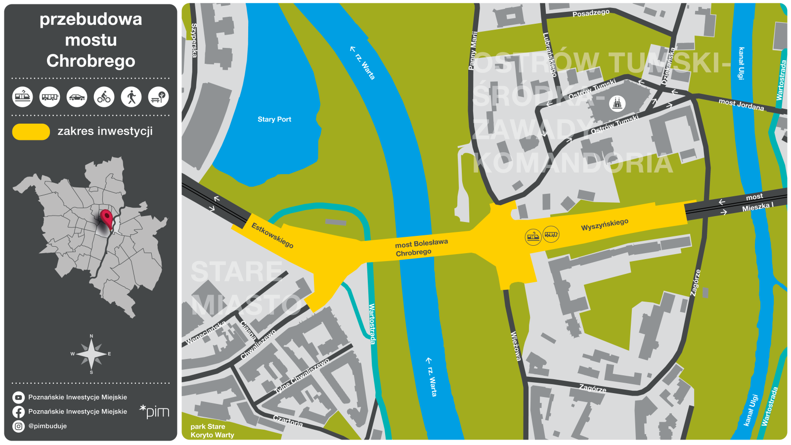 W ramach zadania wybudowane zostaną 3 nowe obiekty mostowe - 2 drogowe i 1 tramwajowy. Dzięki inwestycji most Chrobrego zyska również nowe drogi rowerowe, chodniki i miejsca odpoczynku z infrastrukturą. Zadanie zakłada także przebudowę pobliskich ulic i skrzyżowań, a także nowy wspólny przystanek tramwajowo-autobusowy przy Katedrze.