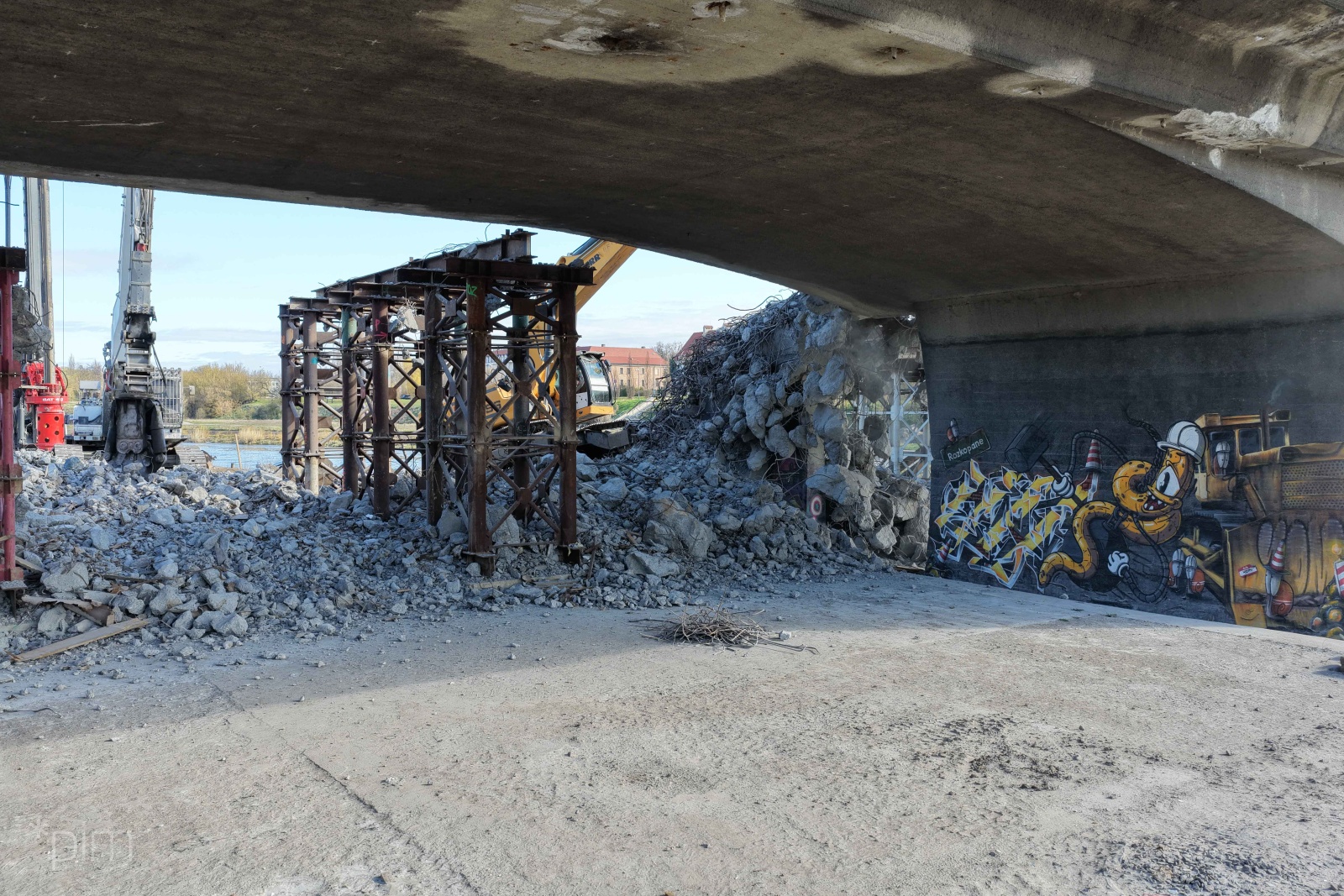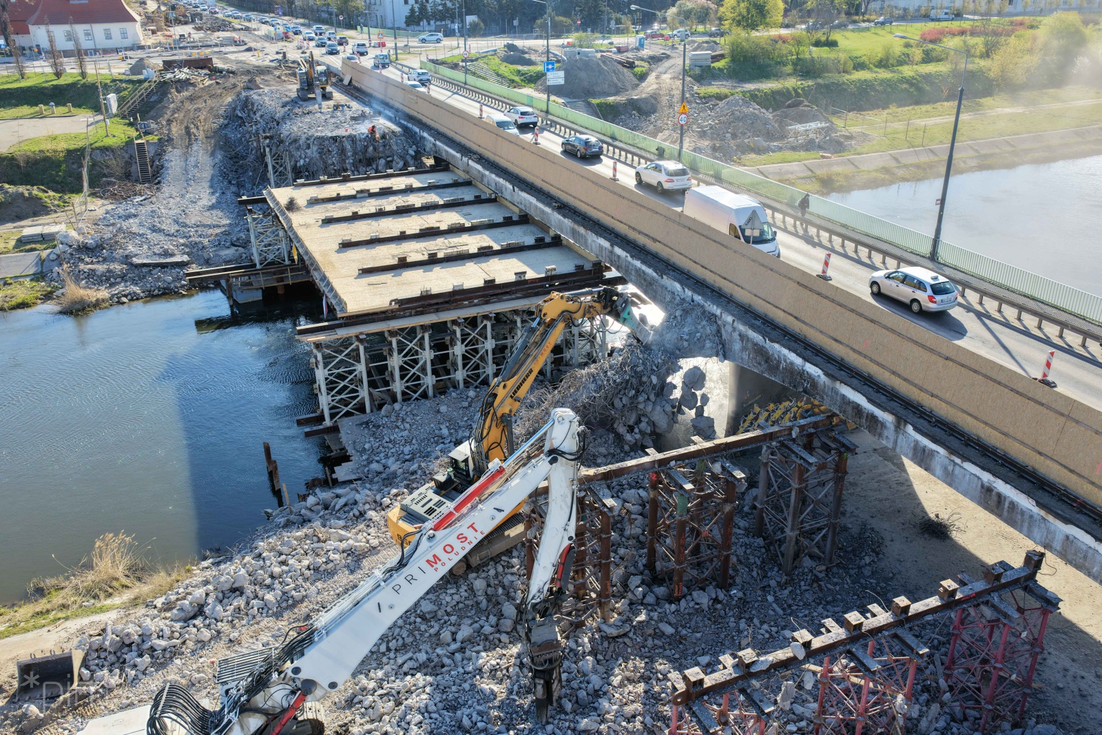 Trwające prace rozbiórkowe na północnej nitce Moście Chrobrego