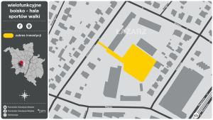 W ramach zadania zostanie opracowany projekt budowy boiska wielofunkcyjnego wraz z zadaszeniem - hala sportów walki wraz z uzyskaniem pozwolenia na budowę.